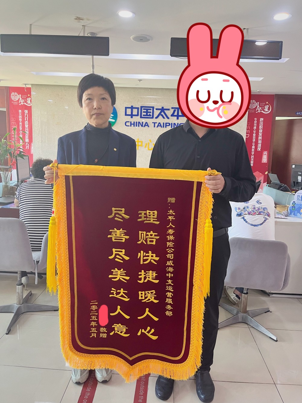 當(dāng)理賠款到賬后,S先生多次致電太平人壽客服,表達(dá)對(duì)理賠團(tuán)隊(duì)的感謝。更令人動(dòng)容的是,他還親自將一面寫有“理賠快捷暖人心、盡善盡美達(dá)人意”的錦旗送到了威海中心支公司。