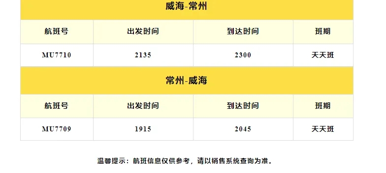 2024年7月1日起威海機(jī)場攜手東方航空新增威?!V莺骄€