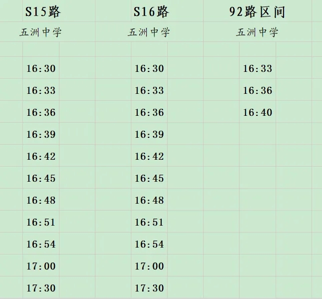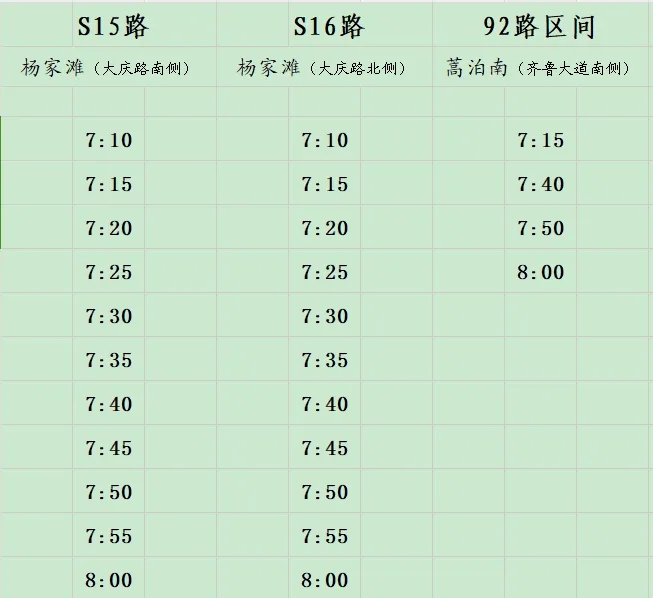 為滿足經(jīng)區(qū)周邊市民上班、學生上學出行需要,自9月9日起,威海公交集團試運行S15路楊家灘(大慶路南側(cè))環(huán)行、S16楊家灘(大慶路北側(cè))環(huán)行,92路區(qū)間加班(蒿泊南—五洲中學)。