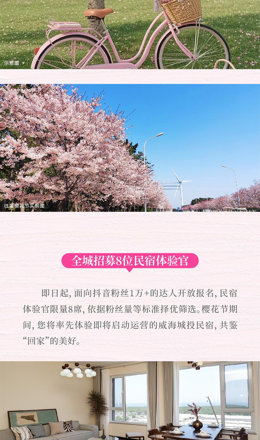 4月11日,威海城投第八屆櫻花節(jié)即將盛綻!限量招募民宿體驗官!