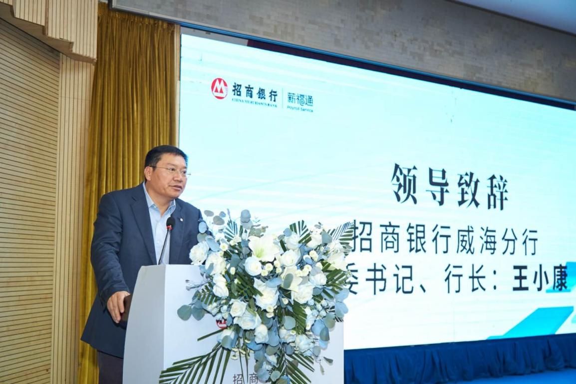 招商銀行威海分行黨委書記、行長王小康作推介會致辭,代表招商銀行威海分行對到場的企業(yè)嘉賓表示熱烈歡迎。致辭中,他向與會嘉賓介紹招商銀行在威海服務(wù)的15年來,始終堅持創(chuàng)新驅(qū)動的專業(yè)化發(fā)展道路,用自身的科技積累回饋客戶、與客戶共成長。截至目前,服務(wù)的企業(yè)客戶近0.7萬戶,零售客戶超58萬人,其中企業(yè)工資代發(fā)客戶達到了13萬人。未來,招商銀行將持續(xù)夯實數(shù)字化產(chǎn)品,讓更多的企業(yè)與招行攜手前行、共同成長。
